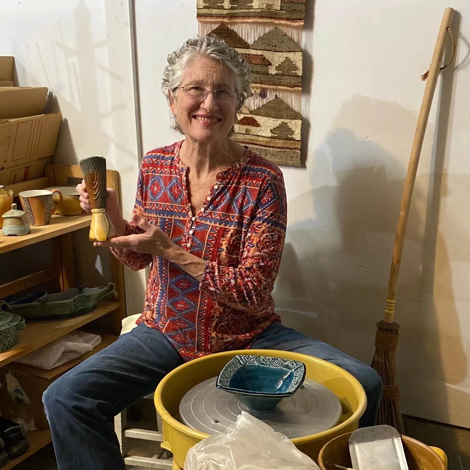 “I gather inspiration for my work from many sources. Being open to receive that inspiration is key. Forms and elements in nature; landscapes, trees, shells, birds, rocks, canyons and arroyos, plants, bones, and flowers, are capable of imprinting in clay, a tale of the walk I’m taking through life. My studio Singing Wheel is indicative of how music and movement inspire my work. The language of sound and the rhythm of the potter’s wheel create for me the beat in the heart of each piece I make. Throwing a pot is a graceful and dynamic movement, choreographed by the hands, analogous to the body in the art of dancing. I give thanks as this dance goes on and I get to experience the bliss of working with mud made beautiful.”